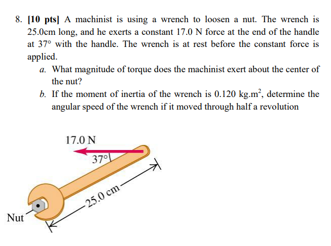 Solved 8 10 Pts A Machinist Is Using A Wrench To Loosen A Chegg Com